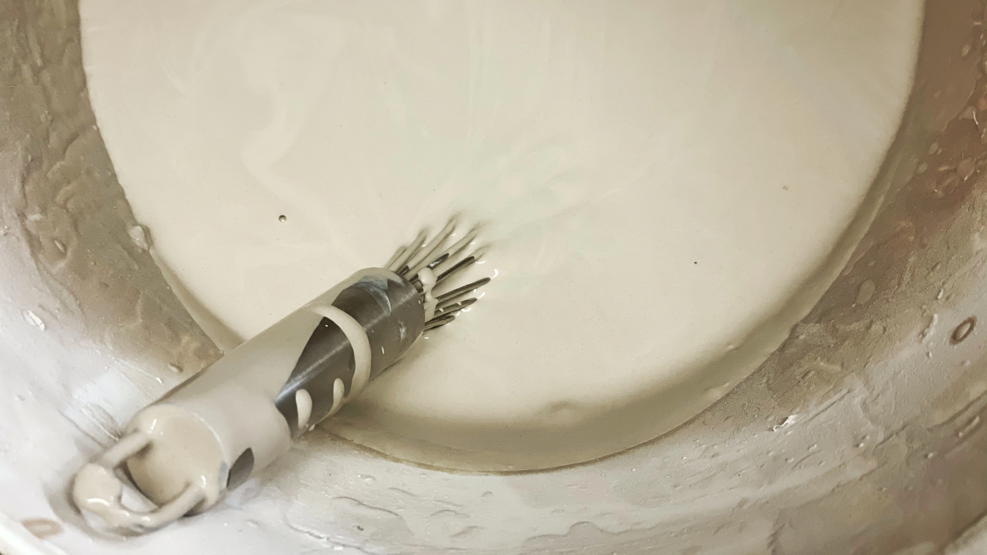 Kiln wash is a barrier to prevent unexpected glaze runs or drips from ruining your pottery kiln shelves, and your work. You brush it directly onto your shelves; it looks similar to a glaze when being applied.