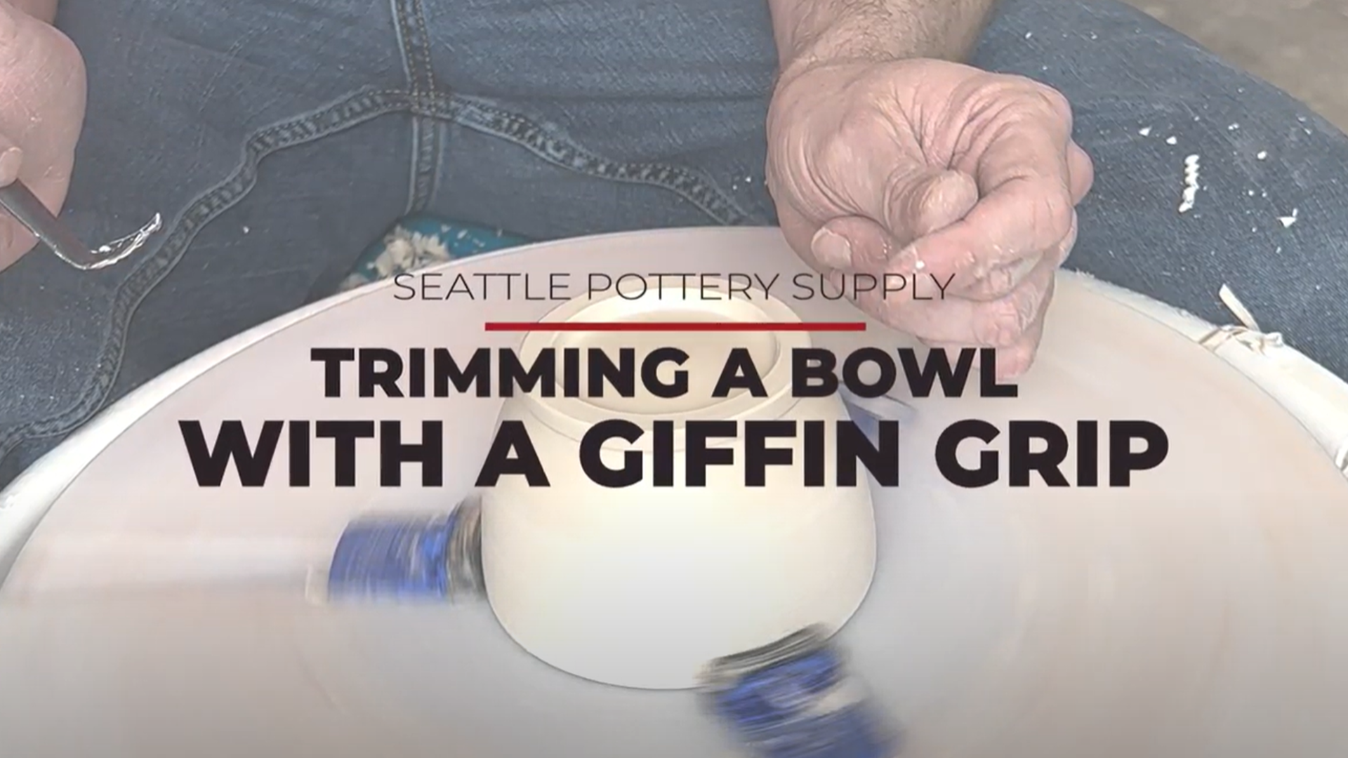 A giffin grip is a super useful tool when working with clay on a wheel. Giffin grips attach to your wheel to hold your piece in place while trimming, glazing, and more.